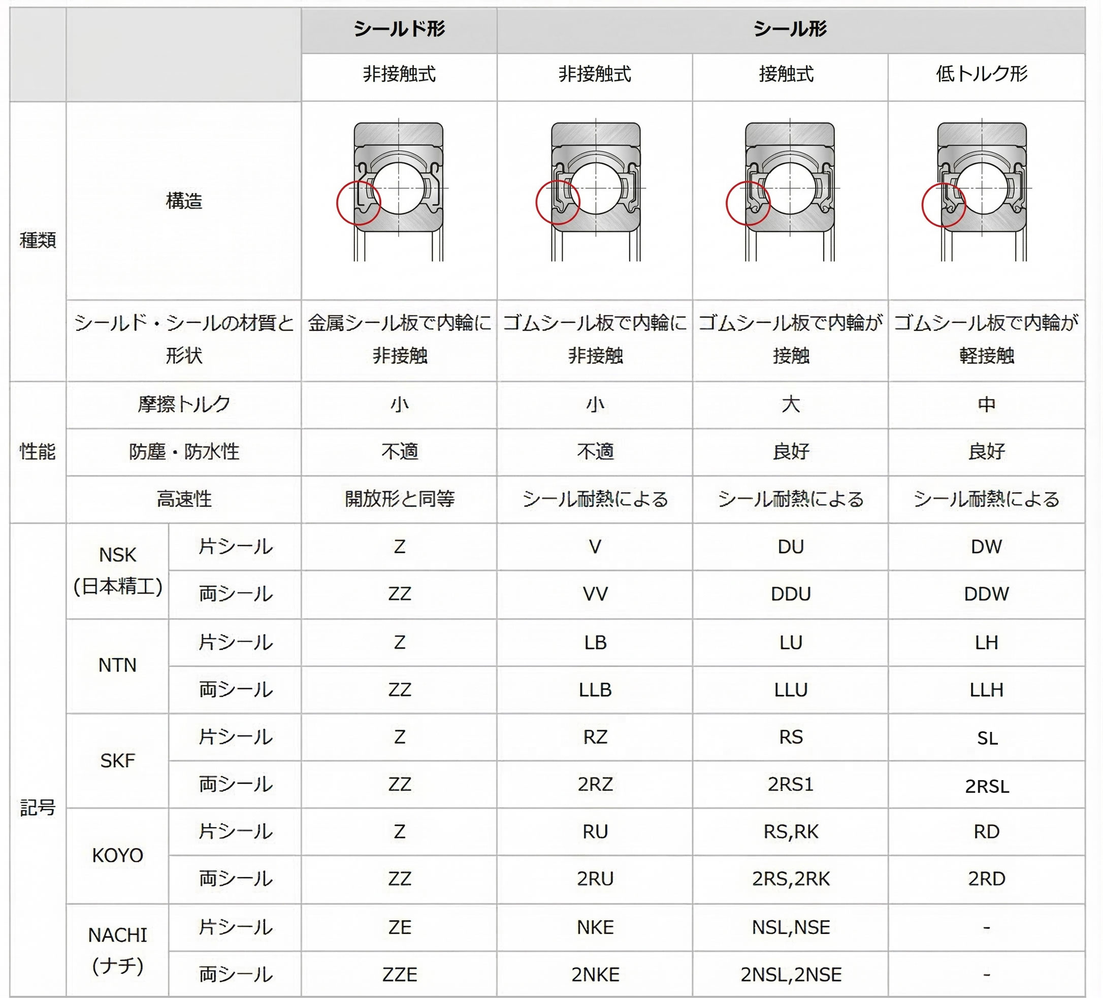 上記のシールの呼び名は、NSKの呼び名で書いてます。(下記にメーカー別の表があります)