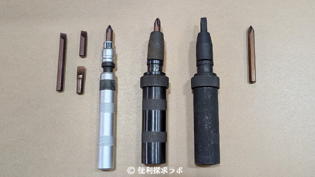 ショックドライバーは、ハンマーで叩くと内部の機構が衝撃を回転力に変換し、固着したネジを緩める構造で、電動インパクトドライバーと異なり、手動で使うため、力加減やタイミングが重要となります。